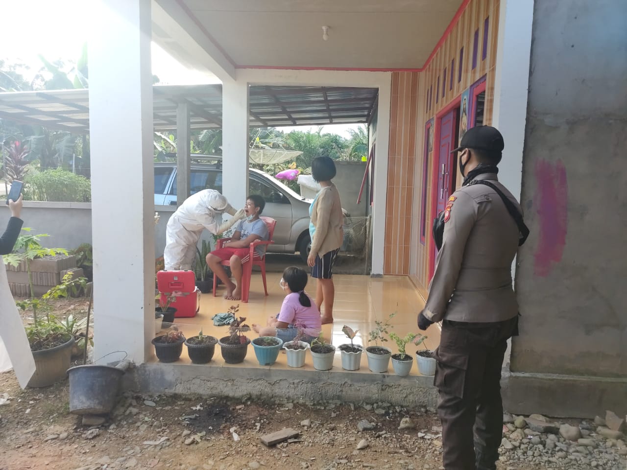 Bhabinkamtibmas Desa Lomba Karya Polsek Ledo bersama Tim Tracing dari Puskemas Ledo melakukan Tracing terhadap warga dan keluarga yang kontak erat dengan pasien yang terkonfirmasi positif Covid-19 di Desa Lomba Karya Kec. Ledo, Selasa (8/6/2021).