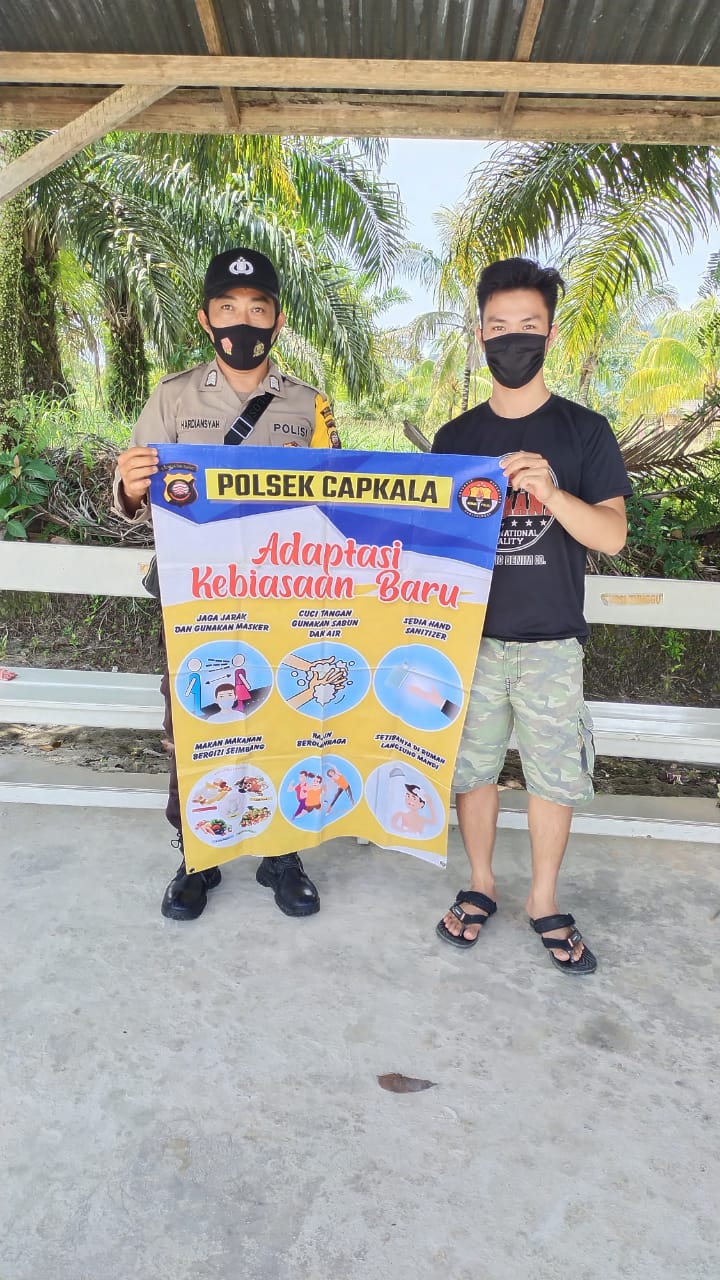 Di lain tempat, Kapolsek Capkala Iptu Wargo Suwarso, tempat mengungkapkan, melalui peran Bhabinkamtibmas inilah, Polri dapat mensosialisasikan dan memberi penjelasan akan tujuan kebijakan pemerintah dalam pencegahan penyebaran Covid-19 di Indonesia dalam masa Adaptasi Kebiasaan Baru (AKB) dengan menyampaikan pesan budayakan hidup bersih dan sehat serta menjaga tubuh agar sehat, menghimbau agar menggunakan masker, laksanakan kebersihan diri keluarga dan lingkungan setempat, biasakan cuci tangan yg baik dan benar dan tidak membuat berita hoax yang meresahkan terkait Covid-19.