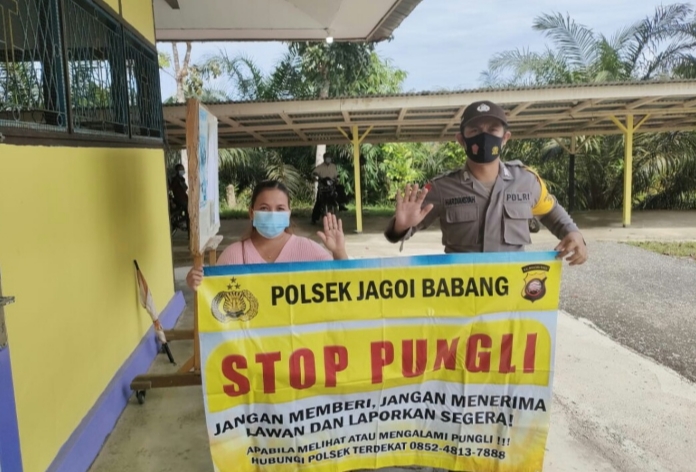 Brigadir ario selaku bhabinkamtibmas di desa semunying jaya melakukan sosialisasi pungli kepada warga yakni mengimbau dan mengajak warga tidak melakukan praktek pungli serta melaporkan pungli kepada pihak berwajib atau polsek jagoi babang
