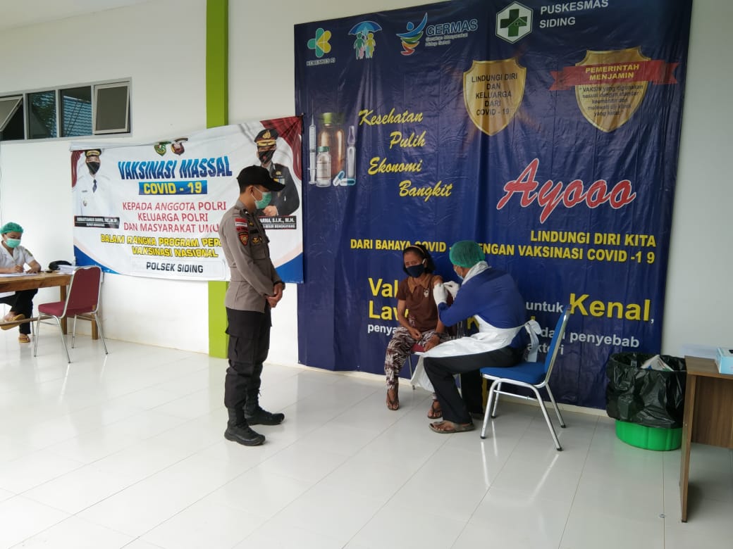 Giat vaksinasi yang dilaksanakan oleh Puskesmas Siding bertempat di Puskesmas Siding dikawal Bhabinkamtibmas Siding, Rabu (14/07/2021).