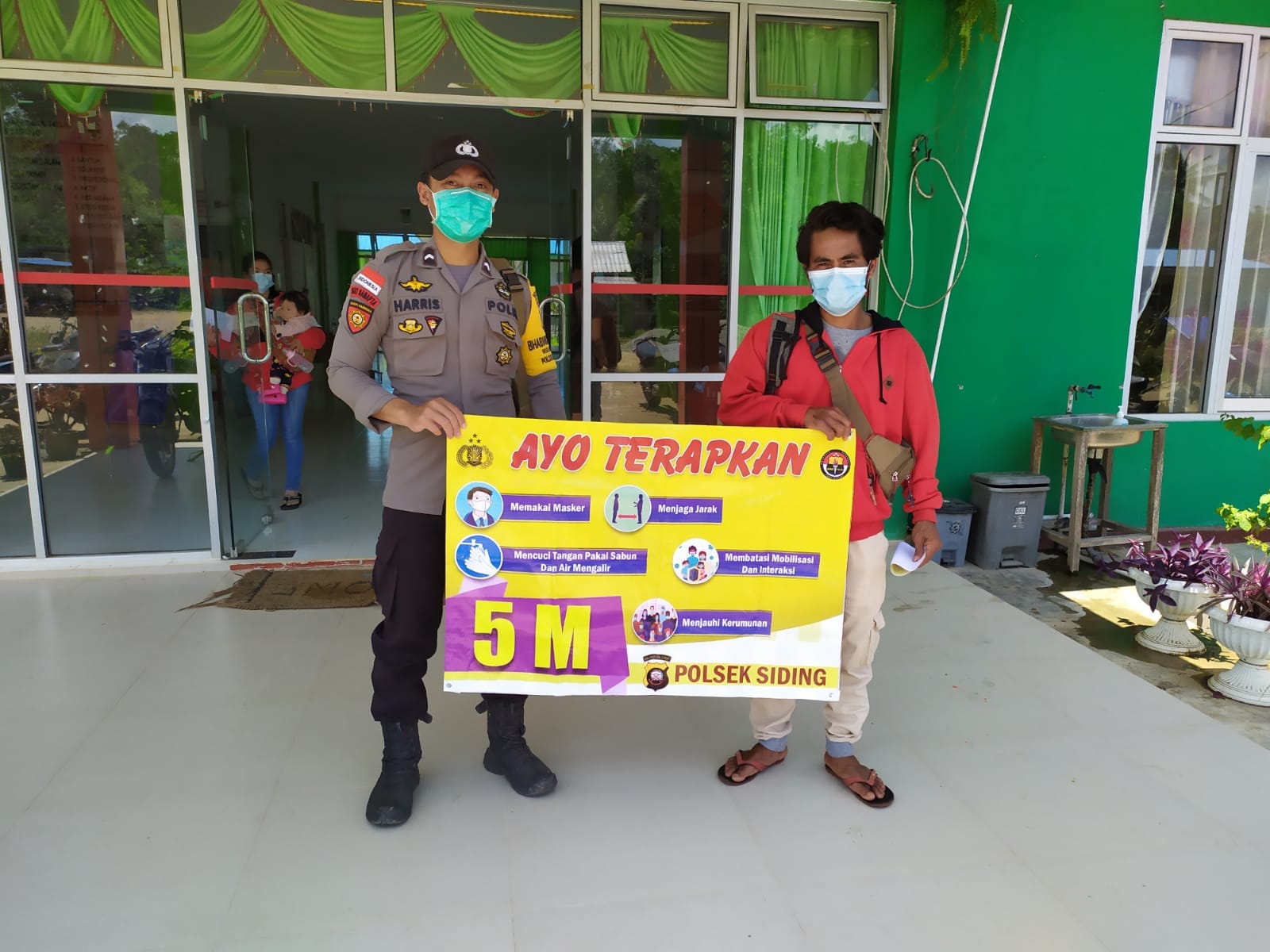 Kegiatan dilakukan dengan memberikan himbauan kepada seluruh masyarakat yang masih beraktifitas di wilayah Kecamatan Siding Kabupaten Bengkayang agar bersama-sama menjaga dan mencegah penyebaran Covid-19 di lingkungan dengan tetap mematuhi aturan protokol kesehatan.