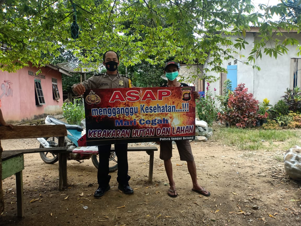 Polres Bengkayang – Polsek Sungai Betung – Musim kemarau yang memicu terjadinya kebakaran hutan maupun lahan mendorong personil Polsek Sungai Betung memberikan himbauan serta pemahaman kepada warga tentang bahaya kebakaran hutan dan lahan. Jumat (03/09/2021).