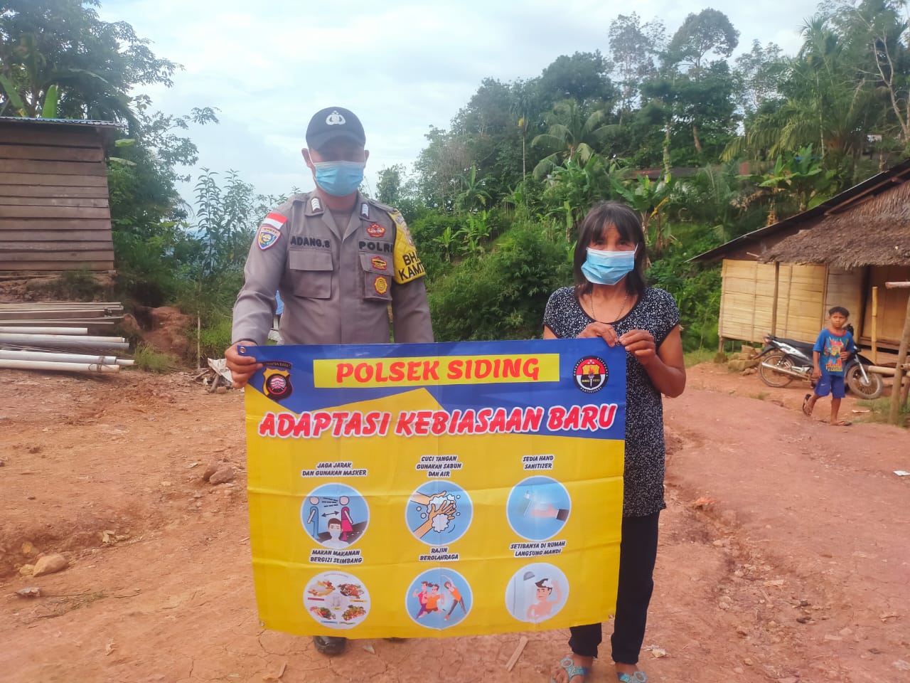 Polsek Siding Polres Bengkayang dengan mengedepankan Bhabinkamtibmas dengan metode sambang kepada warga, disitu Bhabinkamtibmas Bripka Adang Sugiarto bertatap muka dengan warga masyarakat setempat agar tetap menerapkan pola hidup sehat atau mempedomani protokol kesehatan.