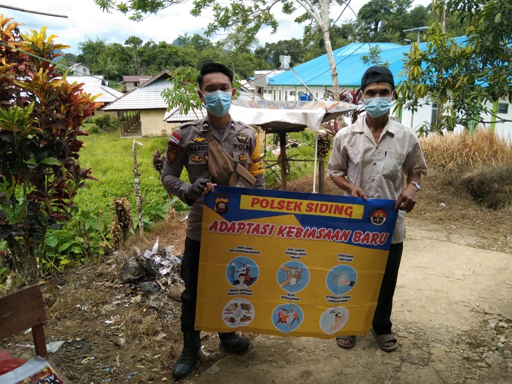 “Sesuai perintah dan petunjuk dari Kapolsek Siding Ipda Bambang Rudiyanto tentang protokol kesehatan, maka wajib bagi saya selaku Bhabinkamtibmas Polsek Siding untuk terus mengingatkan warga di wilayah binaan agar selalu disiplin tentang protokol kesehatan, Semoga dengan apa yang kami lakukan ini bisa menekan dan bahkan menghentikan covid-19 agar cepat teratasi dan kita semua bisa beraktivitas tanpa bayang – bayang covid-19”, ungkapnya.