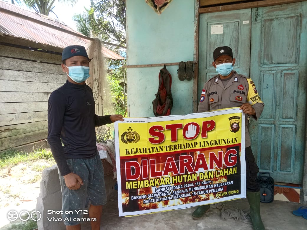 Bhabinkamtibmas Polsek Siding Polres Bengkayang Polda Kalbar Bripka Bartolomeus menghimbau masyarakat binaannya untuk mengantisipasi terhadap terjadinya bahaya Kebakaran Hutan dan Lahan (Karhutla).