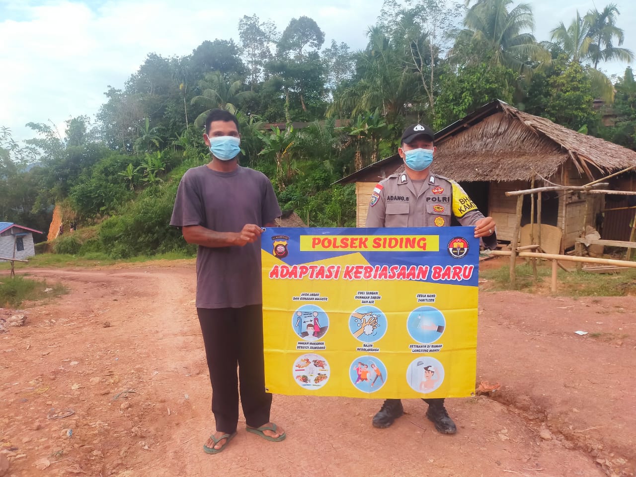 Bhabinkamtibmas Polsek Siding Dalam pencegahan penyebaran wabah virus covid-19 (Corona), Bripka Adang Sugiarto selaku bhabinkamtibmas di Desa Tamong, Kecamatan Siding, Kabupaten Bengkayang, Sabtu (06/11/2021).
