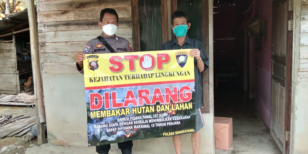 Bhabinkamtibmas menyampaikan pesan Kamtibmas terkait Kebakaran Hutan dan Lahan (Karhutla) mengingat menjelang pergantian musim kemarau kami imbau kepada warga masyarakat selalu waspada terjadinya Kebakaran hutan dan lahan.“ Kami rutin mengingatkan masyarakat bahwa betapa bahaya nya kabut asap akibat karhutla bagi kesehatan, terlebih di masa pandemi Covid 19 saat ini dimana orang yang terkena ISPA sangat rentan tertular Covid 19.