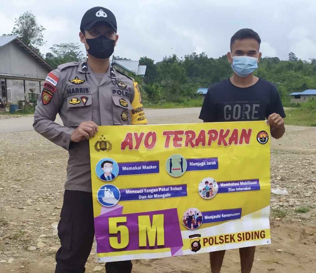 Bhabinkamtibmas Bripda Daniel Harris mengajak masyarakat tetap disiplin Protokol Kesehatan Covid-19, hal ini sebagai upaya mengingat terus agar waspada dengan situasi pandemi Covid-19 dengan demikian masyarakat paham akan perilaku seperti Wajib memakai masker, mencuci tangan air mengalir, menjaga jarak, mengurangi mobilitas dan menjauhi kerumunan