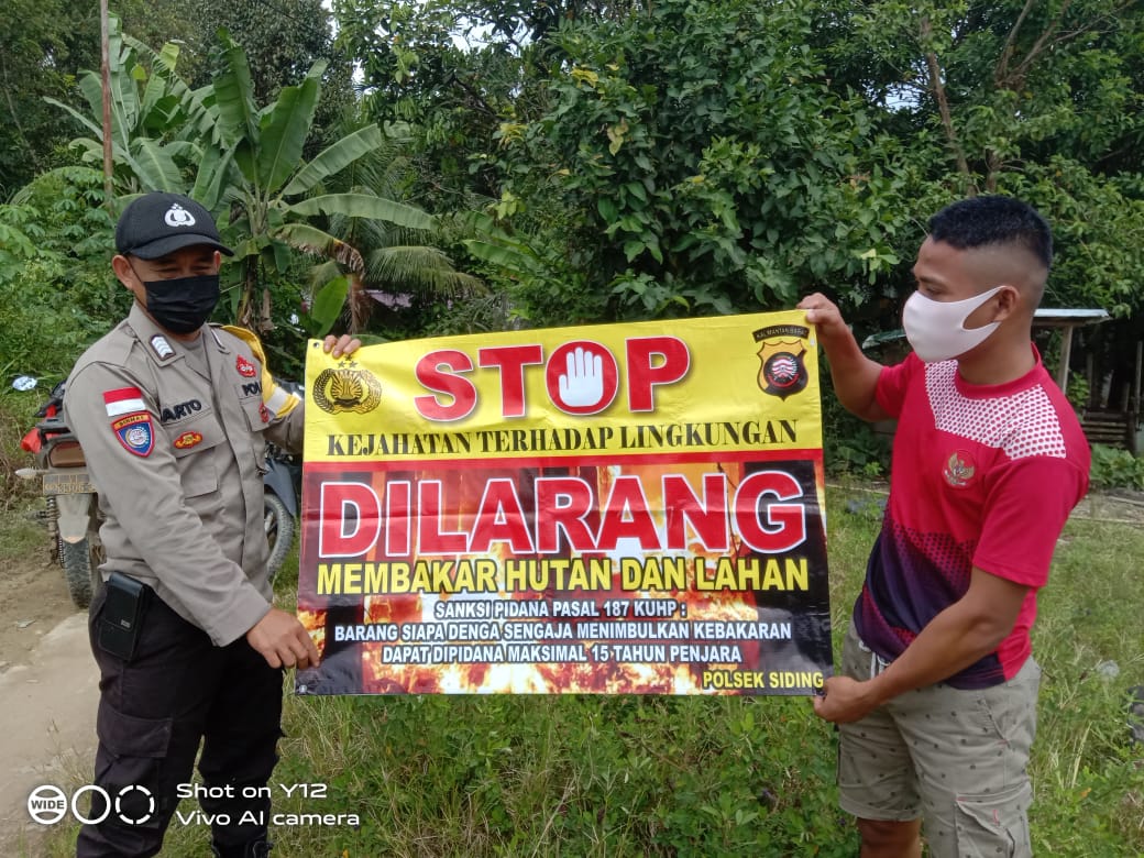 Polsek Siding polres Bengkayang Polda Kalbar terus ingatkan warganya tidak membakar hutan dan lahan, Minggu (18/09/22)
