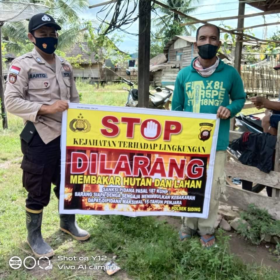 Kapolres Bengkayang, AKBP NB. Darma, S.I.K., M.H. melalui Kapolsek Siding Ipda Bambang Rudiyanto Menyampaikan agar terus laksanakan giat patroli dan himbau para warga agar sama – sama menjaga dari karhutla, sehingga tetap terciptanya situasi yang aman dan kondusif.