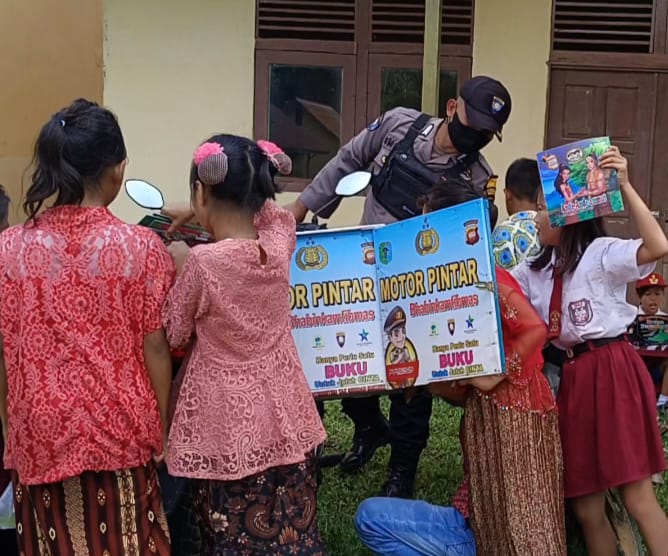 Bhabinkamtibmas Polsek Kayan hulu Bripka Indra wahyudin melaksanakan terobosan kreatif motor pintar di SD negeri 9 smadai Kecamatan Kayan Hulu Kabupaten Sintang, Senin, 31/10/22.