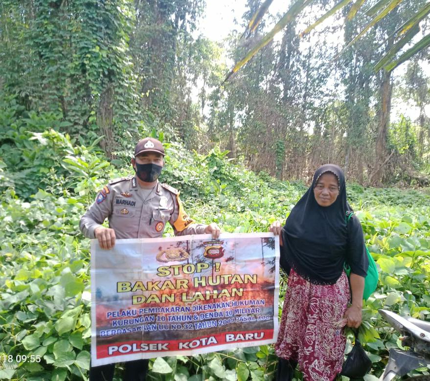 Kapolres Melawi AKBP Sigit Eliyanto Nurharjanto, S.I.K melalui Kapolsek Kota Baru Ipda Aditya Jaya Laksana Maulana, S. Tr. K menyampaikan kegiatan yang dilaksanakan oleh para Bhabinkamtibmasnya tersebut untuk memberikan imbauan dan kegiatan monitoring dalam upaya mencegah karhutla di Wilayah Hukum Polsek Kota Baru.