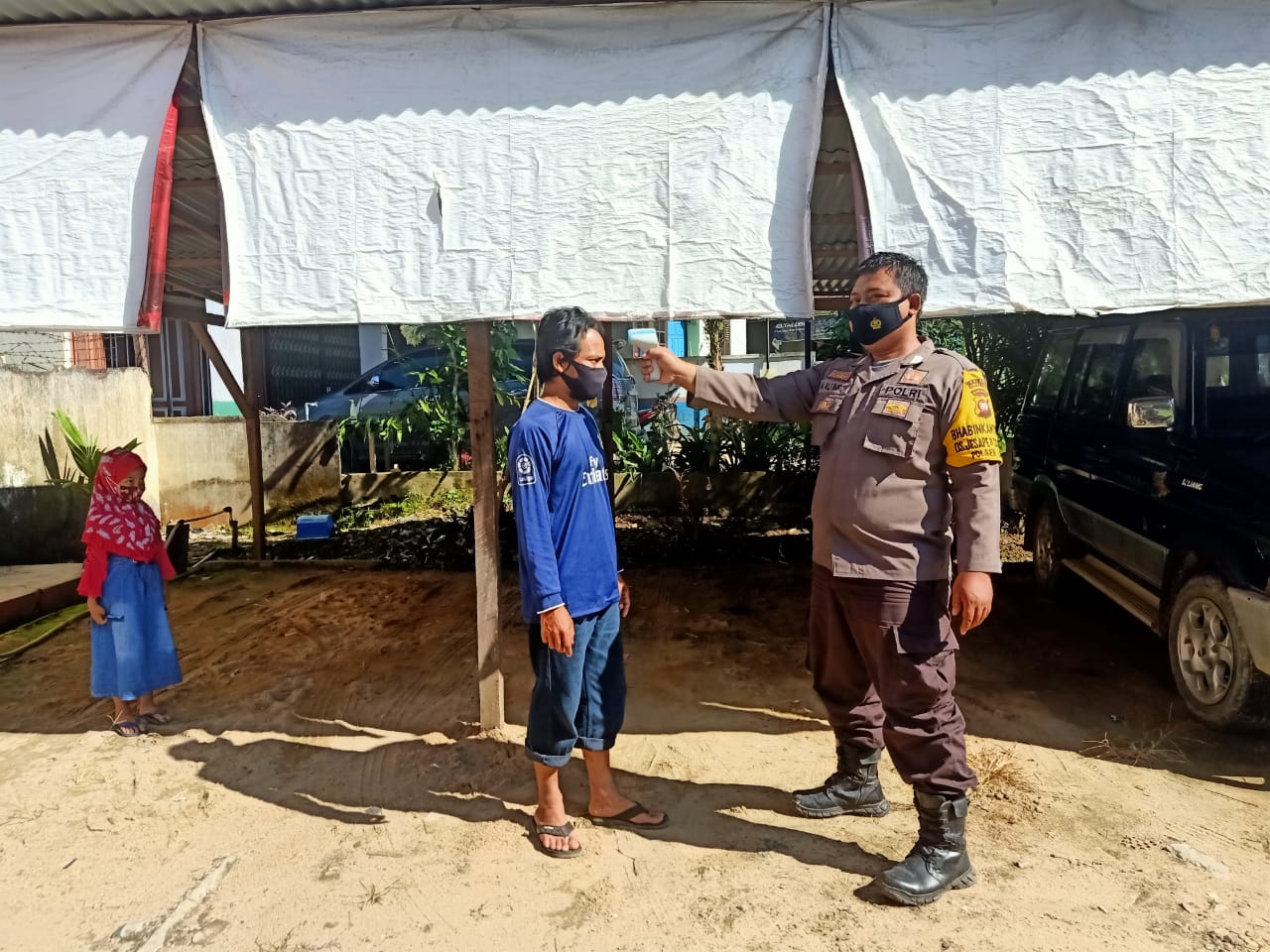 Pengawasan kegiatan PPKM dilakukan dengan berupa pemeriksaan suhu tubuh kepada warga. Pengecekan suhu tubuh dilakukan oleh jajaran personil Bhabinkamtibmas Polsek Ledo bagi warga bertujuan untuk deteksi dini terhadap warga yang diduga memiliki gejala apabila terpapar virus Covid19.