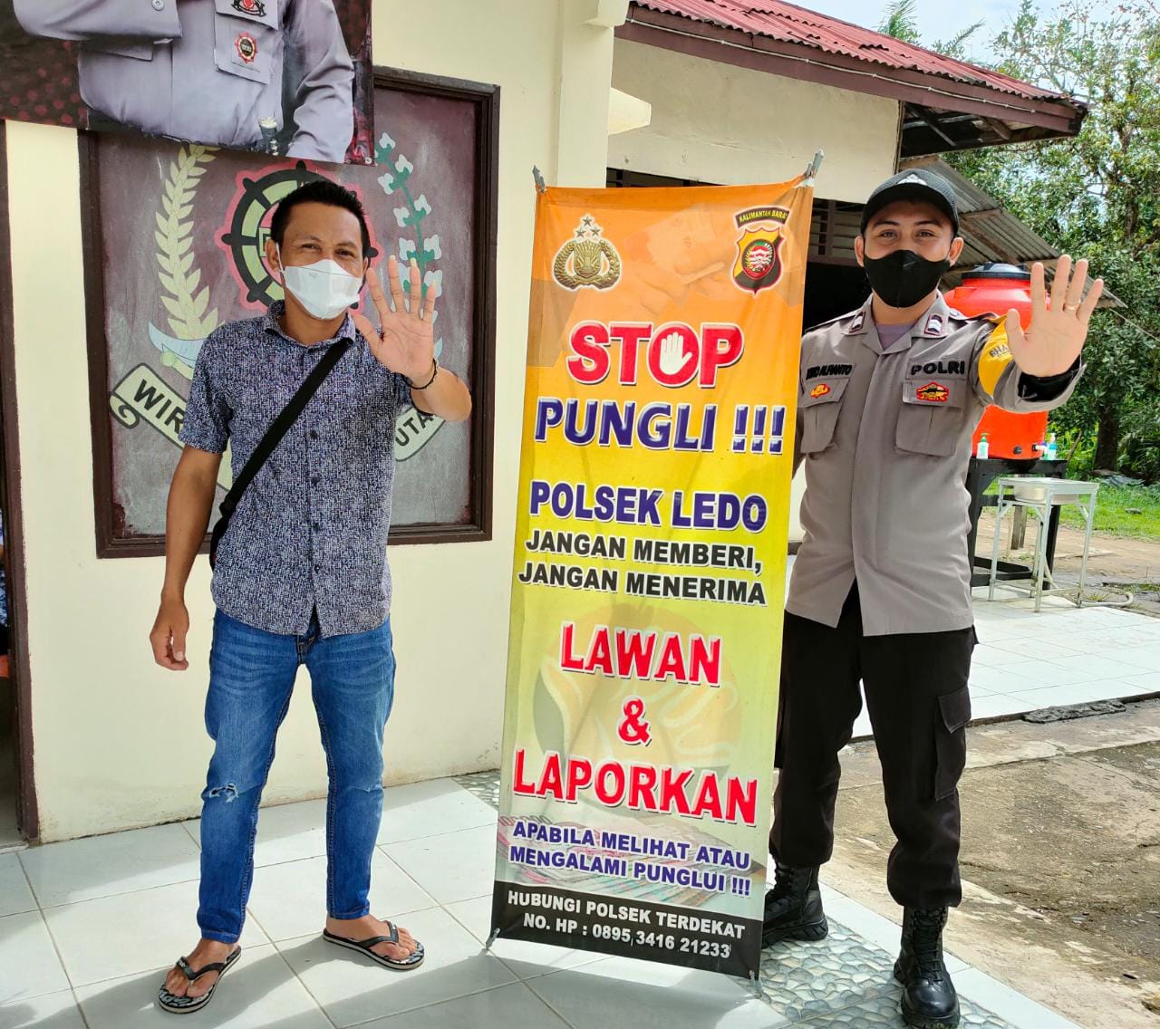 Kapolres Bengkayang AKBP Arif Agung Winarto, SIK melalui Kapolsek Ledo IPTU Asep Maulana mengatakan dalam Himbauan dan Sosialisasinya petugas Bhabinkamtibmas Polsek Ledo Bripka Ali Imron menjelaskan tentang apa saja yang masuk dalam kategori pungutan liar serta menjelaskan sanksi – sanksi hukumannya kepada masyarakat.
