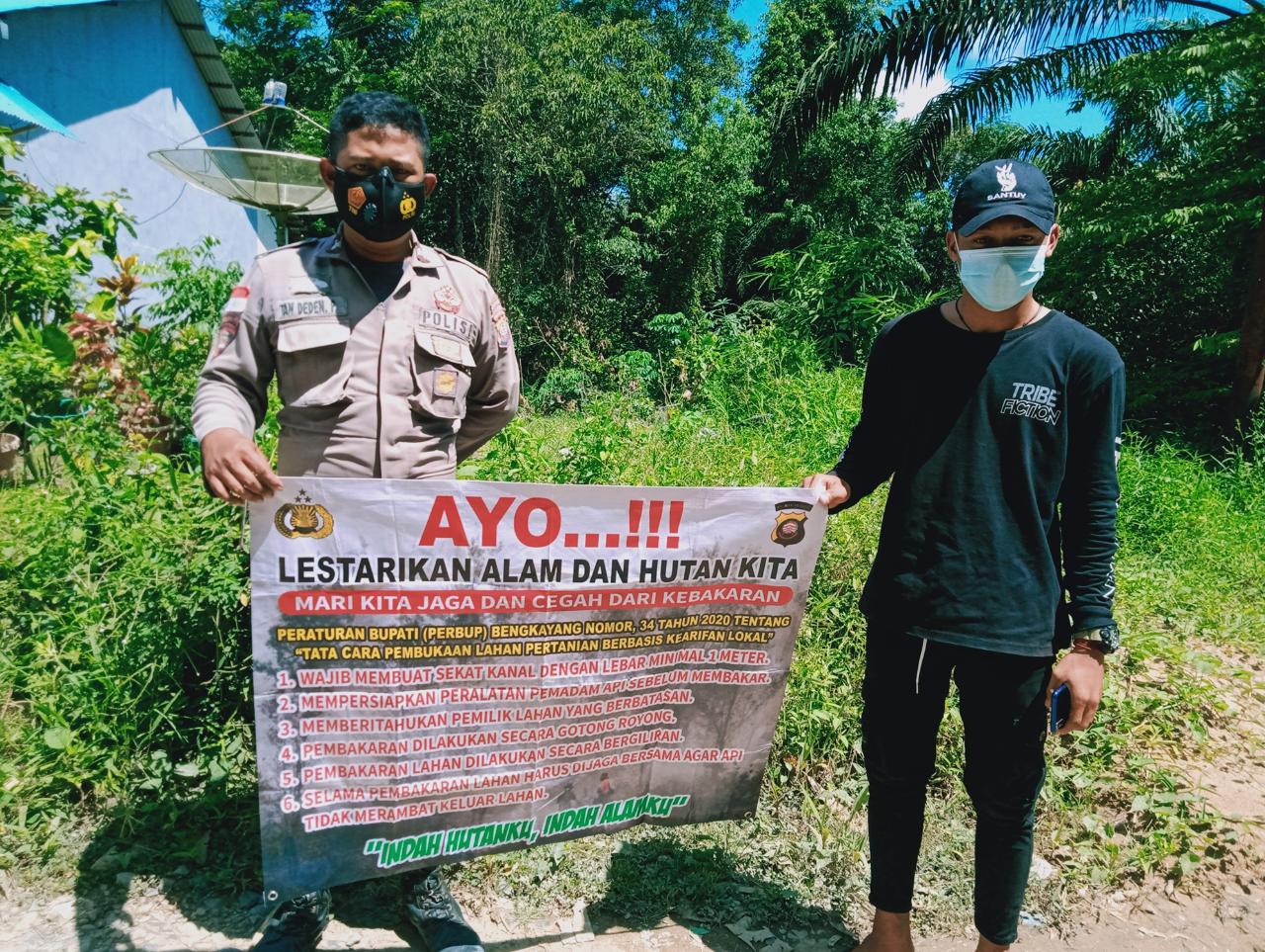 Polres Bengkayang. Untuk mencegah dan mengantisipasi kebakaran hutan dan lahan, Anggota Bhabinkamtibmas Polsek Ledo melakukan sosialisasi kebakaran hutan dan lahan. Minggu/08/Agustus/2021.