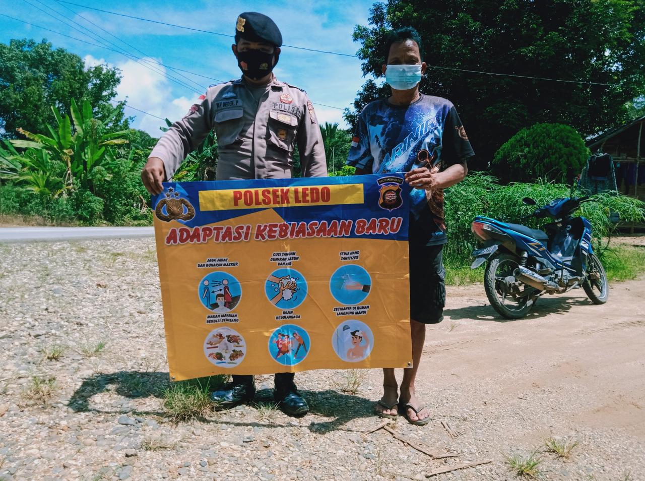 Bhabinkamtibmas Polsek Ledo sosialisasikan tentang Adaptasi Kebiasaan Baru (AKB) kepada masyarakat di desa binaannya diwilayah Kecamatan Ledo, Selasa (23/11/2021).