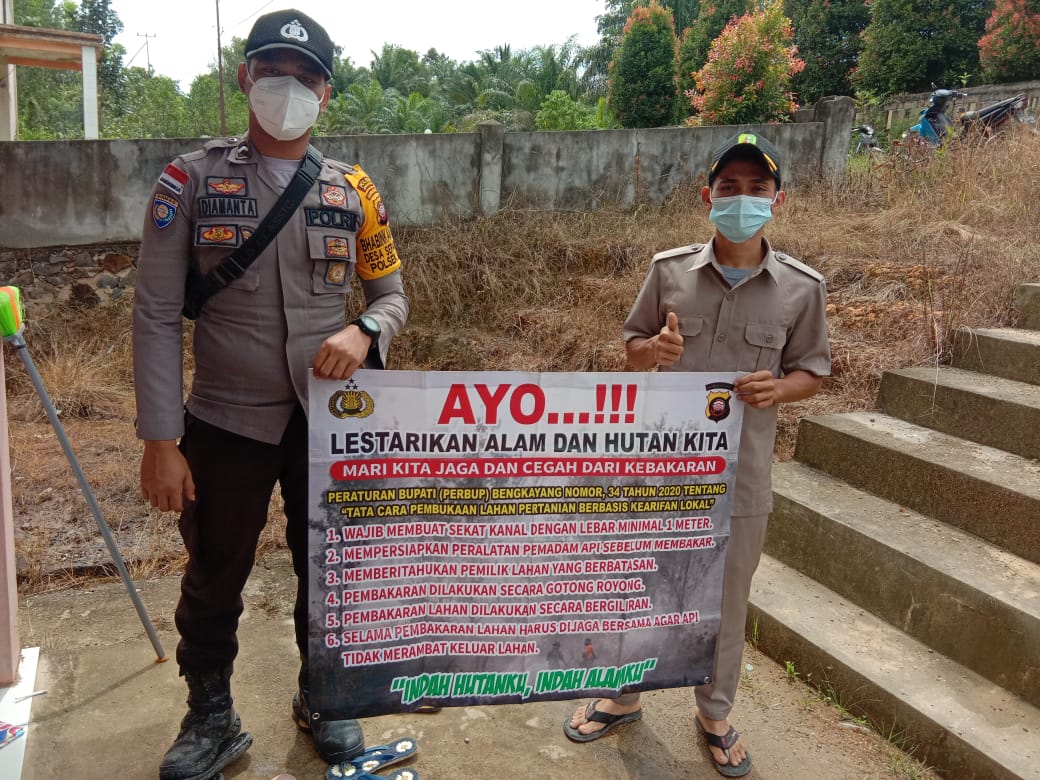Seluruh jajaran hingga Bhabinkamtibmas turun langsung ke masyarakat, memberikan sosialisasi terkait pencegahan kebakaran hutan dan lahan, tutur Kapolsek.