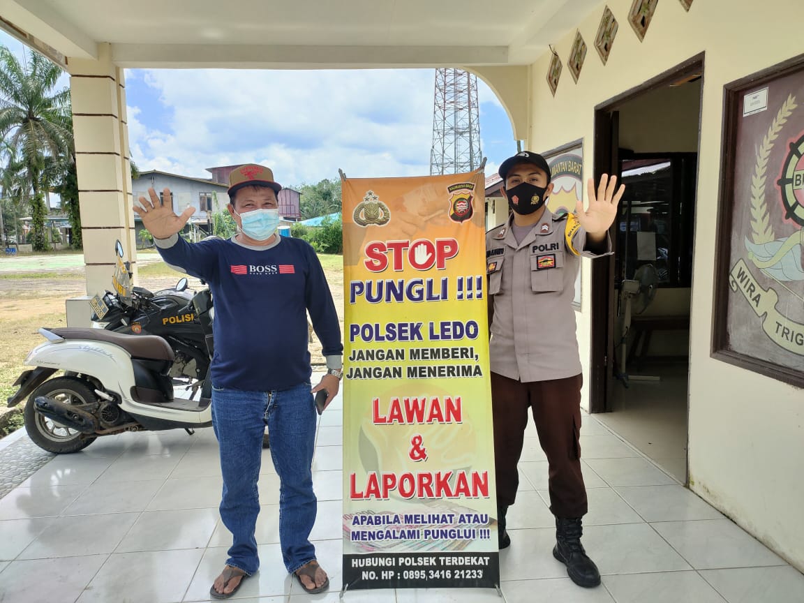 Bhabinkamtibmas Polsek Ledo rutin turun ke lapangan guna memantau dan mensosialisasikan stop Pungli sehingga wilkum Polsek Ledo bebas dari praktek pungutan liar.