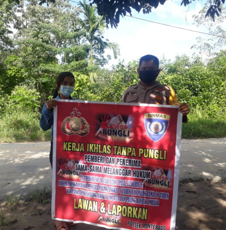 “Kami berharap, sosialisasi ini dapat diterima masyarakat sehingga Pungli tidak terjadi di wilkum Polsek Monterado”, ungkapnya.