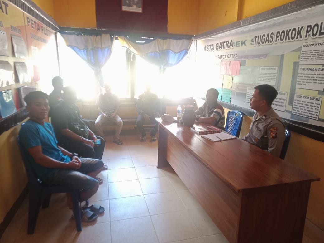 Bhabinkamtibmas Briptu Toni Satria mempertemukan kedua belah pihak yang bermasalah didampingi oleh keluarganya untuk dilakukan mediasi.