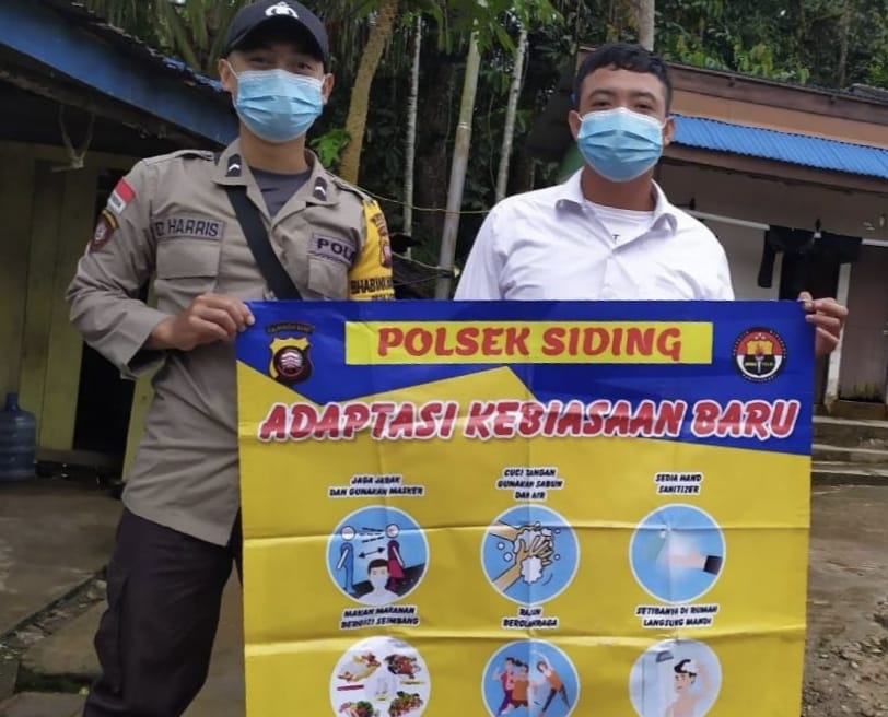 Hal ini dilakukan oleh Bripda Dainel Harris selaku Bhabinkamtibmas Polsek Siding Polres Bengkayang Polda Kalbar, dengan cara membentangkan spanduk dan berdialog serta sosialisasi tentang wabah virus corona.