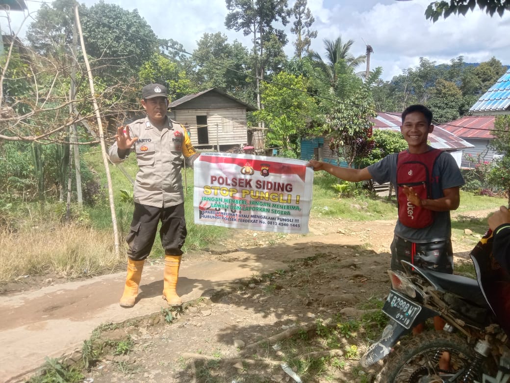 Guna pencegahan kemudian terjadinya pungutan liar di desa binaan, pemeliharaan kamtibmas Polsek Siding melalui Bhabinkamtibmas desa Tawang, Bripka Bartolomeus menyampaikan himbaun tentang Stop Pungli kepada warga,