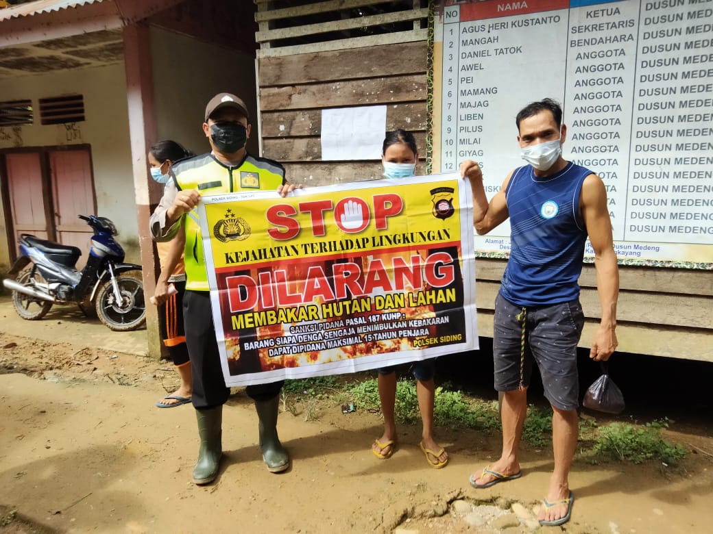 Kapolsek Siding melalui Bhabinkamtibmas Desa Sungkung II menyampaikan, kami kepolisian sektor Siding tetap menjalankan apa yang menjadi atensi dari pemerintah pusat maupun pemerintah daerah untuk melakukan pencegaahan karhutla di wilayah kecamatan Siding, saya harap masyarakat dan pihak swasta juga mendukung kegiatan ini sehingga wilayah kec. Siding bebas dari kebakaran hutan dan lahan (karhutla).