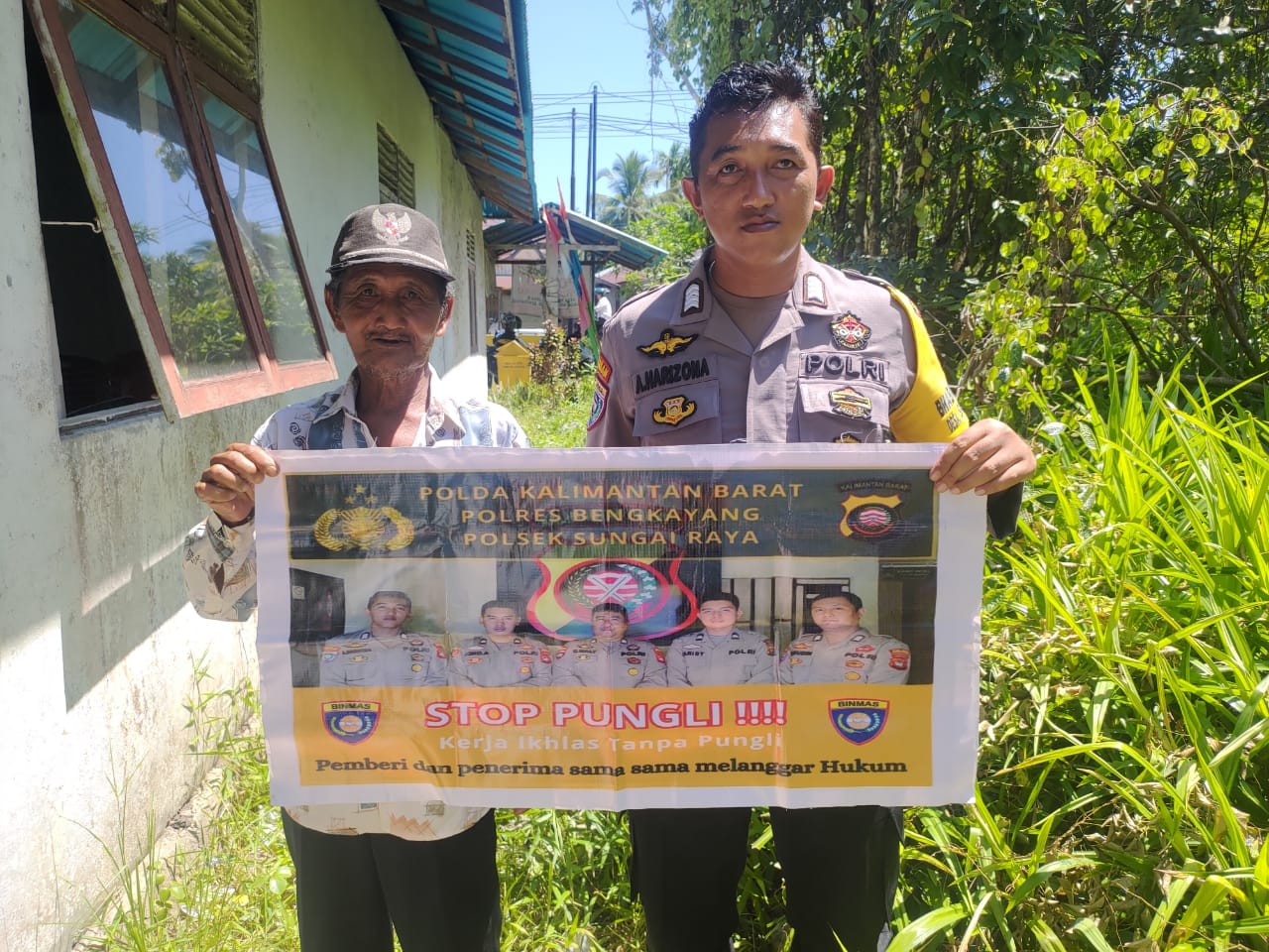 Kegiatan Bhabinkamtibmas Polsek Sungai Raya yaitu melaksanakan himbauan Stop Karhutla dengan memgunakan benner agar masyarakat tahu tentang larngan membakar hutan dan lahan dan ada Undang-undangnya.