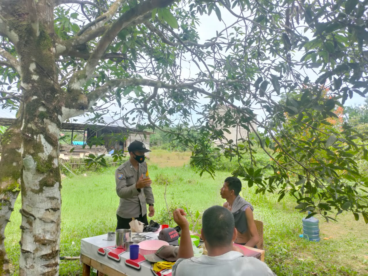Polres Bengkayang – Protokol Kesehatan memakai masker rutin di sampaikan oleh Bhabinkamtibmas Polsek Monterado dalam mencegah penularan Covid-19, Rabu (07/07).