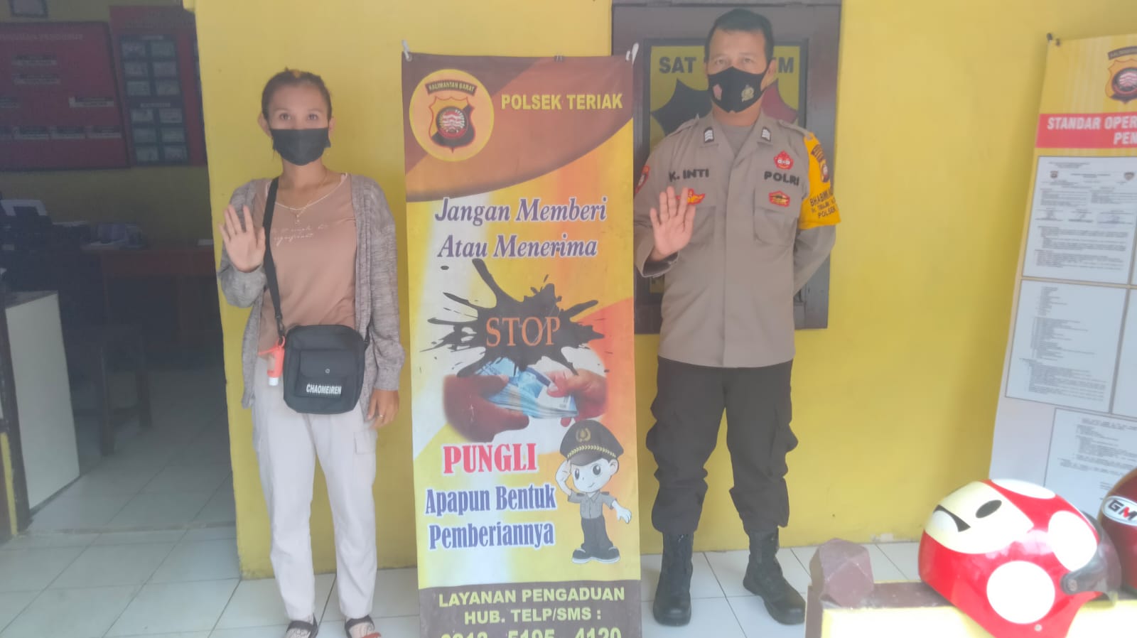 Polres Bengkayang – Personil Polsek Teriak Brigadir Inti berupaya mencegah pungutan liar melalui penyampaian imbauan, Rabu (14/7/2021).