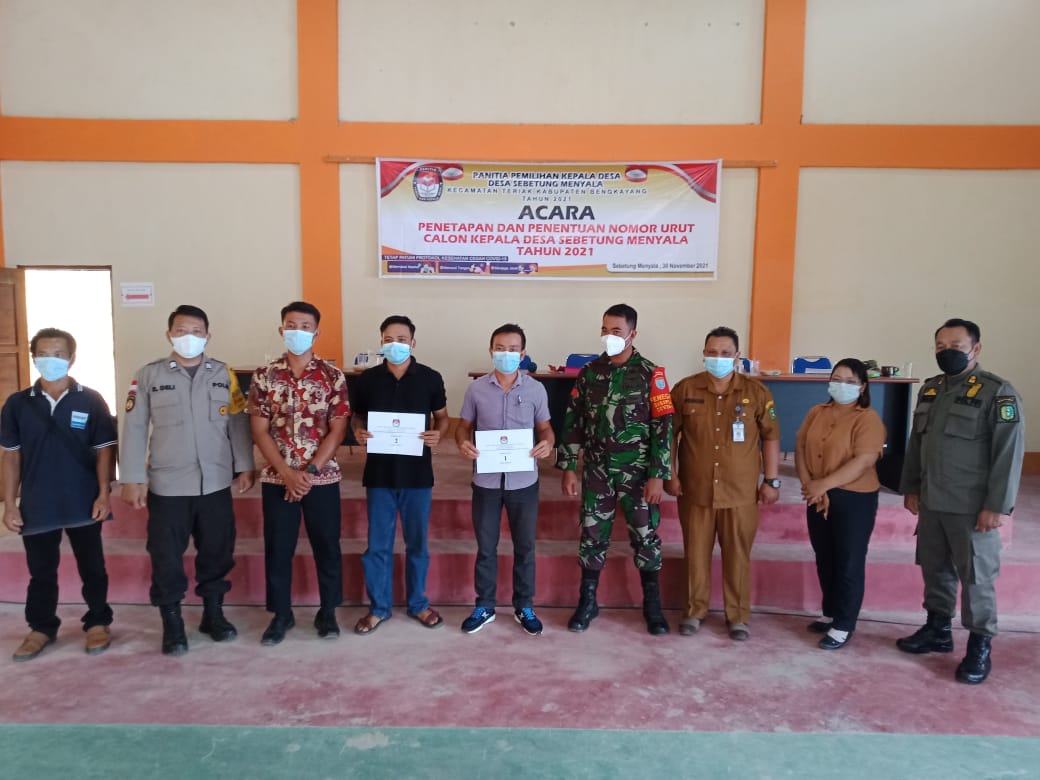 Penetapan dan cabut undi nomor urut calon kepala desa ini merupakan tahapan dalam rangka Pemilihan kepala desa Sebetung menyala kecamatan Teriak.