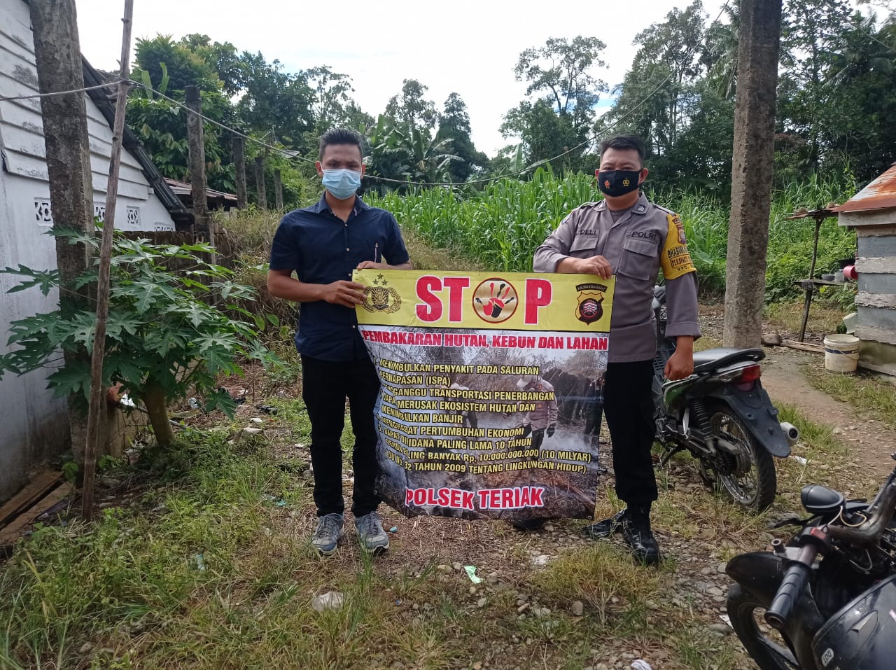 Salah satu personil polsek Teriak yaitu Brigadir R. Deli secara rutin sampaikan imbauan stop kebakaran hutan dan lahan kepada warga di wilayah hukumnya.