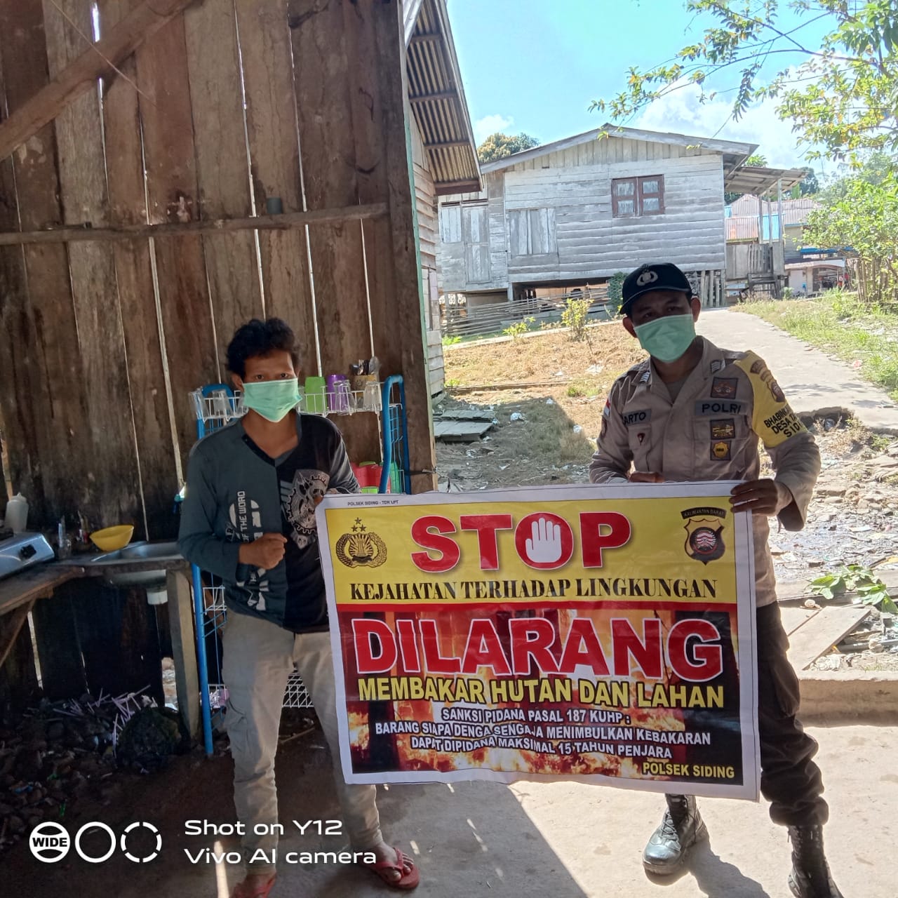 Kapolsek Siding Ipda Bambang Rudiyanto, melalui Bripka Bartolomeus menjelaskan, kami gencar melaksanakan himbauan dan sosialisasi kepada masyarakat tentang pencegahan kebakaran hutan dan lahan.