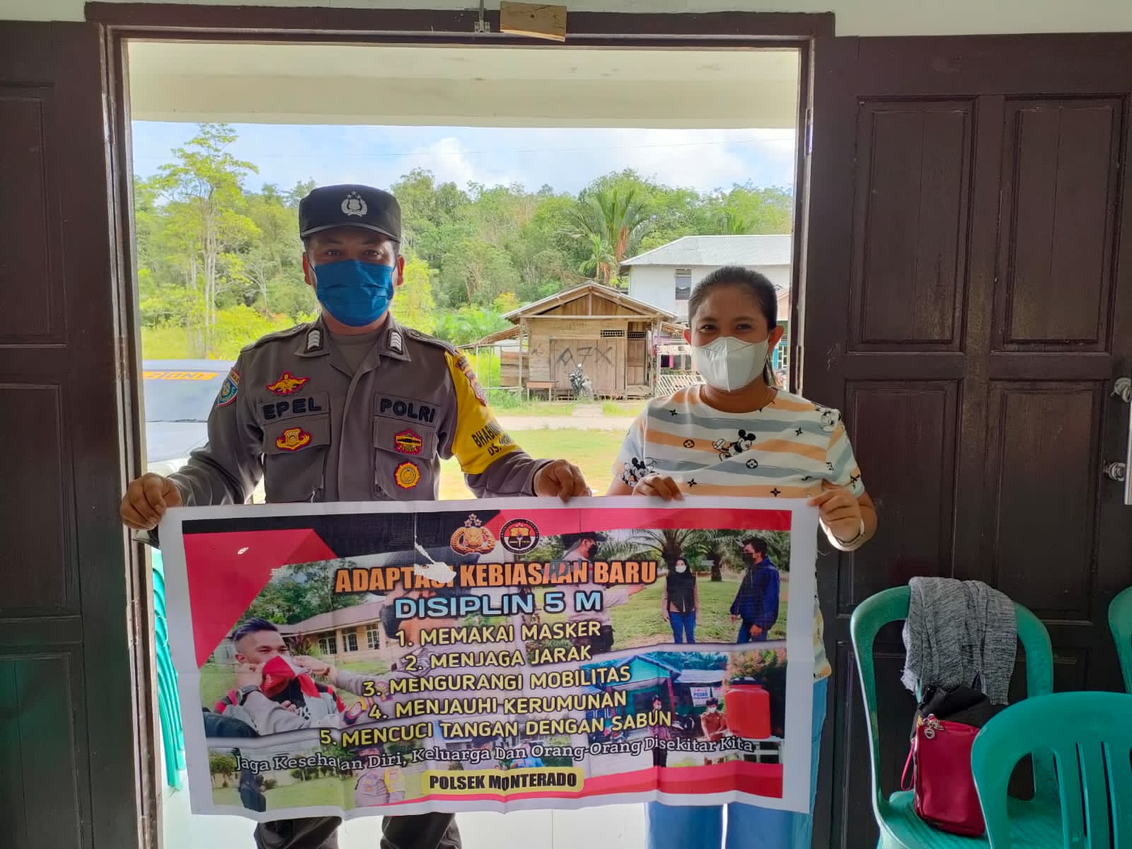 “Dengan rutin menyampaikan imbauan dan sosialisasi Protokol Kesehatan 5M kepada warga masyarakat di harapkan tumbuhnya rasa kesadaran untuk disiplin dalam menerapkan Protokol Kesehatan guna mencegah penyebaran Covid19”, Ucap Bripka Pepel.