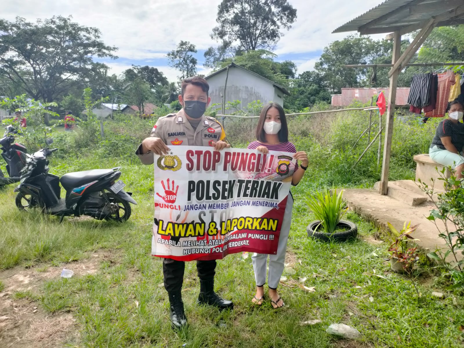 Polres Bengkayang – Personil polsek Teriak Bripka Sanggra. S, laksanakan giat penyampaian imbauan stop pungutan liar, Rabu (28/07/2021).