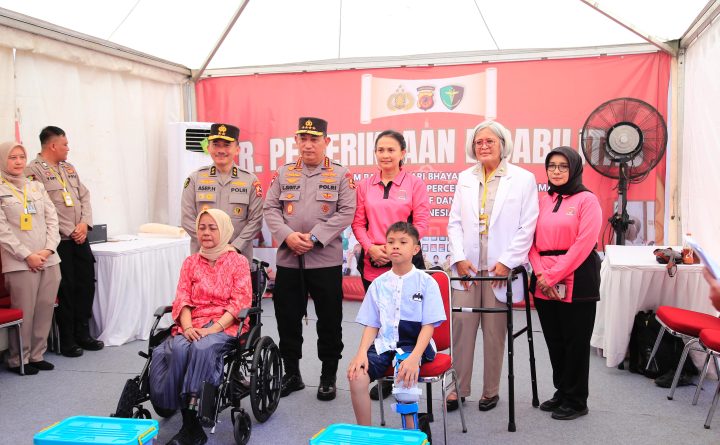 Jawa Barat – Mabes Polri menggelar Bakti Sosial Kesehatan untuk masyarakat di seluruh Indonesia. Kegiatan layanan kesehatan gratis ini merupakan bagian dari rangkaian HUT Bhayangkara ke-78. Puncak bakti sosial kesehatan ini dipimpin oleh Kapolri Jenderal Listyo Sigit Prabowo di Lapangan Karangpawitan, Kabupaten Karawang, Jawa Barat, Rabu (26/6/2024). Kapolri dalam kesempatan ini menyapa masyarakat yang hadir..