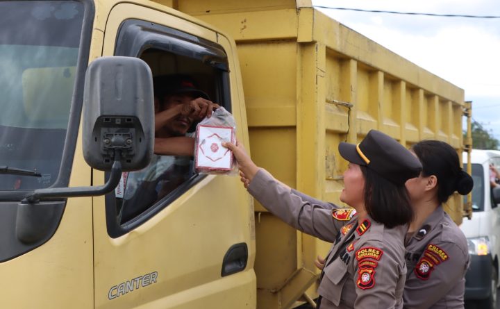 Bengkayang, Kalbar – Kepolisian Resor Bengkayang Polda Kalbar melalui Polwan Polres Bengkayang membagikan Takjil Gratis kepada masyarakat, bertempat di Jalan Raya Sanggau Ledo depan Mapolres Bengkayang, Selasa (2/4/24) sore. Kegiatan tersebut di pimpin oleh Wakapolres Bengkayang Kompol Anne Tria Sefyna, S.H., S.I.K dan diikuti Kasat Lantas Polres Bengkayang, Kapolsek Sungai Betung dan sejumlah Polwan Polres..