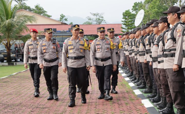 Bengkayang, Kalbar – Kapolres Bengkayang Polda Kalbar AKBP Teguh Nugroho, S.H., S.I.K., M.I.K., memimpin apel pergeseran pasukan yang akan melakukan pengamanan Tempat Pemungutan Suara (TPS) dalam rangka Pemilu Tahun 2024 di wilayah Kabupaten Bengkayang, Minggu (11/2/24) pagi. Apel yang berlangsung di Halaman Mapolres Bengkayang, dihadiri Pejabat Utama dan Kapolsek Jajaran Polres Bengkayang, personel Polres Bengkayang..