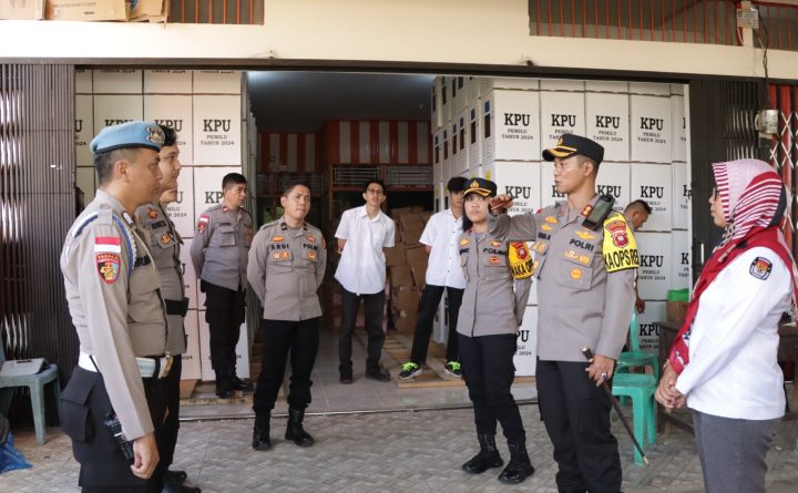 Bengkayang, Kalbar – Kapolres Bengkayang Polda Kalbar AKBP Teguh Nugroho, S.H., S.I.K., M.I.K., bersama Wakapolres dan Pju Polres Bengkayang melakukan pengecekan ke Kantor Sekretariat KPU Kabupaten Bengkayang, Gudang Logistik KPU Kabupaten Bengkayang serta Kantor Sekretariat Bawaslu Kabupaten Bengkayang, Senin (22/1/24) pagi. Adapun tujuan pengecekan tersebut guna memantau sejauh mana kesiapan KPU dan Bawaslu Kabupaten Bengkayang..