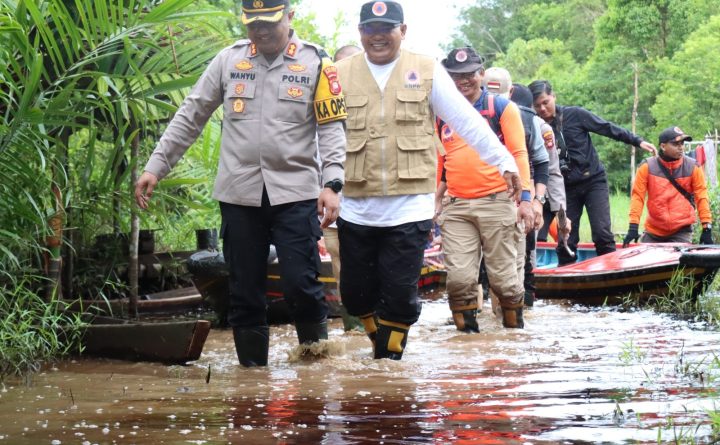 TBNEWSPOLREKUBURAYA.COM, KUBU RAYA – Kapolres Kubu Raya AKBP Wahyu Jati Wibowo,S.I.K, S.H., M.H, bersama Forkopimda Kabupaten Kubu Raya melakukan patroli di pemukiman warga terdampak banjir Rob yang berlokasi di Dusun Lingga Dalam Desa Lingga Kecamatan Sungai Ambawang Kabupaten Kubu Raya, Kalbar. Patroli pemantau secara langsung keadaan warga yang terdampak ini dilakukan seiring meningkatnya debit air..