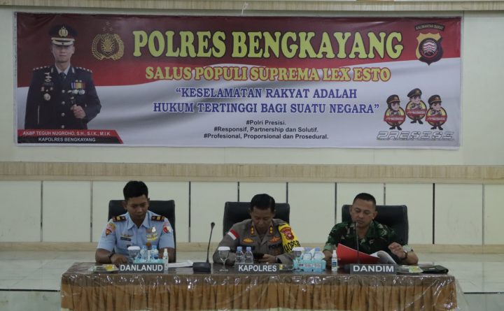 Bengkayang, Kalbar – Kepala Kepolisian Resor Bengkayang Polda Kalbar AKBP Teguh Nugroho, S.H., S.I.K., M.I.K. menggelar rapat rencana pengamanan kunjungan kerja Menkopolhukam dan Kemendagri di Kecamatan Jagoi Babang. Rapat yang digelar di Aula Tunggal Panaluan Polres Bengkayang, Senin (11/12/23) siang, diikuti Kapolres Bengkayang serta Dandim 1209 Bengkayang Letkol INF Albertinus Mariano, S.E., Pasi Ops Kodim..