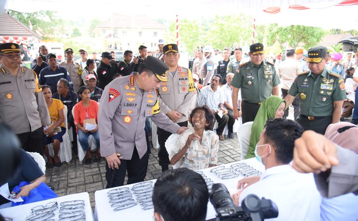 Maluku. Kapolri Jenderal Polisi Drs. Listyo Sigit Prabowo dan Panglima TNI Jenderal Agus Subiyanto memberikan bantuan kesehatan serta bantuan sosial kepada masyarakat di Maluku. Bantuan tersebut diberikan dalam rangka mendekatkan diri dengan masyarakat dan mengajak terwujudnya Pemilu 2024 aman dan damai. Bakti kesehatan dan bakti sosial tersebut diselenggarakan di Polda Maluku dan diterima oleh perwakilan..