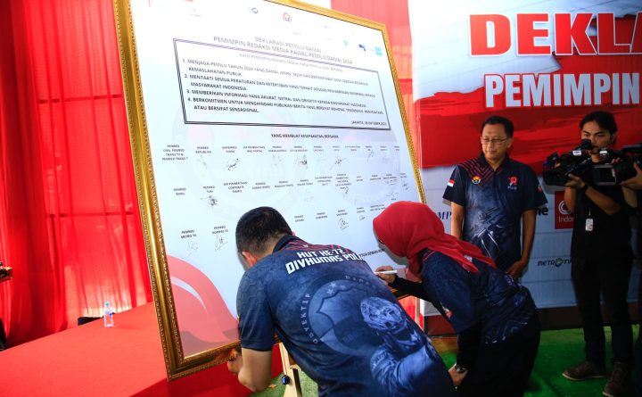 Puluhan pemimpin redaksi media massa, Divisi Humas Polri, dan Dewan Pers menggelar deklarasi pemilu damai. Deklarasi Kawal Pemilu Damai 2024 ini menjadi komitmen bersama sebagai bentuk sinergitas menghadapi pesta demokrasi. Kadiv Humas Polri Irjen. Pol. Sandi Nugroho menjelaskan, deklarasi tersebut merupakan pernyataan bersama untuk sepakat pemilu harus damai, punya semua pihak, dan memiliki tanggung jawab..