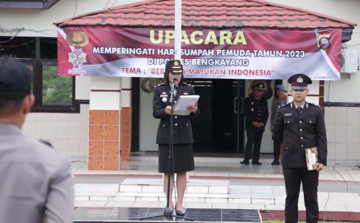 Bengkayang, Kalbar – Kepolisian Resor Bengkayang Polda Kalbar menggelar Upacara Peringatan Hari Sumpah Pemuda Ke-95 tahun 2023 bertempat di Halaman Mapolres Bengkayang, Sabtu (28/10/23) pagi. Kegiatan dipimpin oleh Wakapolres Bengkayang Kompol Anne Tria Sefyna, S.H., S.I.K. dan diikuti Pju Polres Bengkayang, Kapolsek Jajaran, serta Personel Polres Bengkayang. Dalam amanatnya, Wakpolres menyampaikan momentum Hari Sumpah Pemuda..