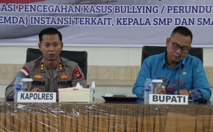 Bengkayang, Kalbar – Dalam rangka Optimalisasi Pencegahan Kasus Bullying atau perundungan, Kapolres Bengkayang menggelar Tatap Muka (Tapka) bersama Tiga Pilar (TNI, Polri dan Pemda), Instansi terkait, Kepala SMP dan SMA sederajat se-Kab. Bengkayang. Kegiatan yang berlangsung di Aula Tunggal Panaluan, Kamis (26/10/23) pagi, dihadiri oleh Bupati Bengkayang, Kadis Sosial Pemberdayaan Perempuan dan Perlindungan Anak (DSP3A),..