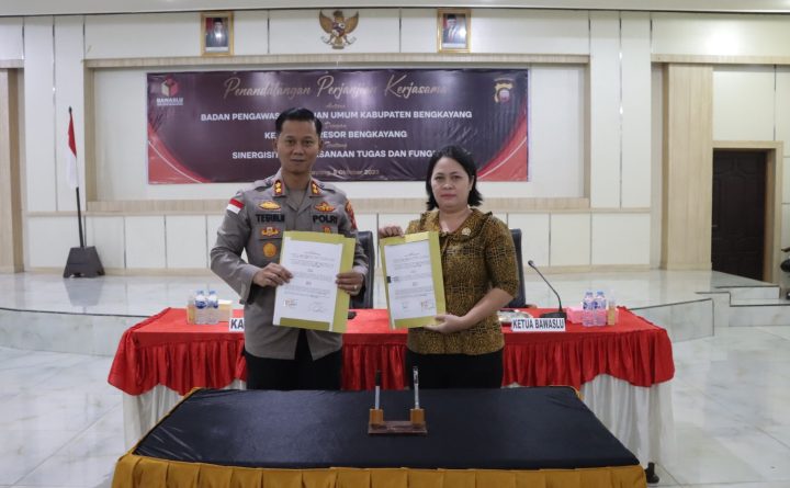 Bengkayang, Kalbar – Kepolisian Resor Bengkayang Bengkayang Polda Kalbar melaksanakan penandatanganan MoU atau kesepakatan kerja sama dengan Badan Pengawas Pemilu (Bawaslu) Bengkayang sebagai komitmen untuk memperkuat sinergitas dalam pelaksanaan tugas pengawasan Pemilu tahun 2024 yang aman dan damai. Bertempat di Aula Tunggal Panahuluan Polres Bengkayang, Kamis (5/10/2023), kegiatan dihadiri oleh Kapolres Bengkayang AKBP Teguh Nugroho,..