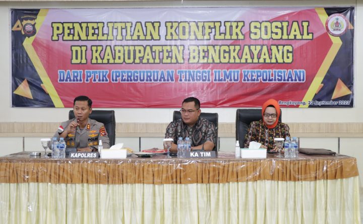 Bengkayang, Kalbar – Kepala Kepolisian Resor Bengkayang Polda Kalbar AKBP Teguh Nugroho, S.H., S.I.K., M.I.K. menyambut kunjungan dari Tim PTIK (Perguruan Tinggi Ilmu Kepolisian) terkait Sosialisasi Sistem Manajemen Pengamanan di Perkebunan dengan Pihak Perusahaan Perkebunan Se-Kabupaten Bengkayang, bertempat di Aula Tunggal Panaluan, Sabtu (23/9/23) pagi. Adapun rombongan Tim penelitian dari Perguruan Tinggi Ilmu Kepolisian tersebut..