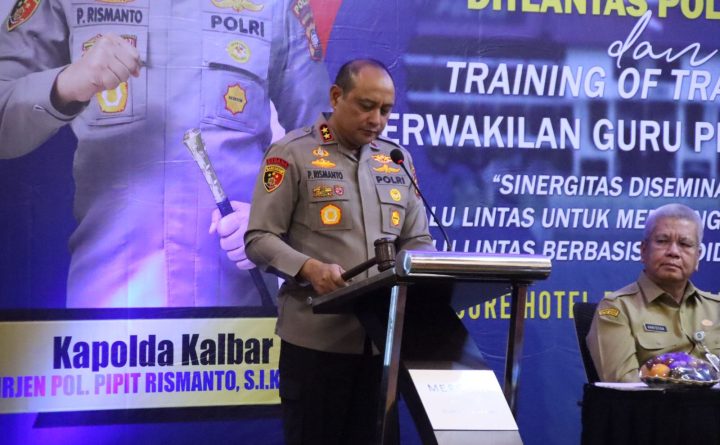 PONTIANAK, POLDA KALBAR – Kapolda Kalbar Irjen Pol Pipit Rismanto S.I.K., M.H., membuka secara resmi kegiatan Rakernis fungsi Lalu Lintas Jajaran Direktorat Lalu Lintas Polda Kalbar dan Training Of Trainer (TOT) Perwakilan Guru PKN Provinsi Kalbar, Senin (7/8). Kegiatan Rakernis fungsi lalu lintas ini dilaksanakan di Hotel Mercure Pontianak, mengangkat tema “Sinergitas Diseminasi Pelajaran Lalu..