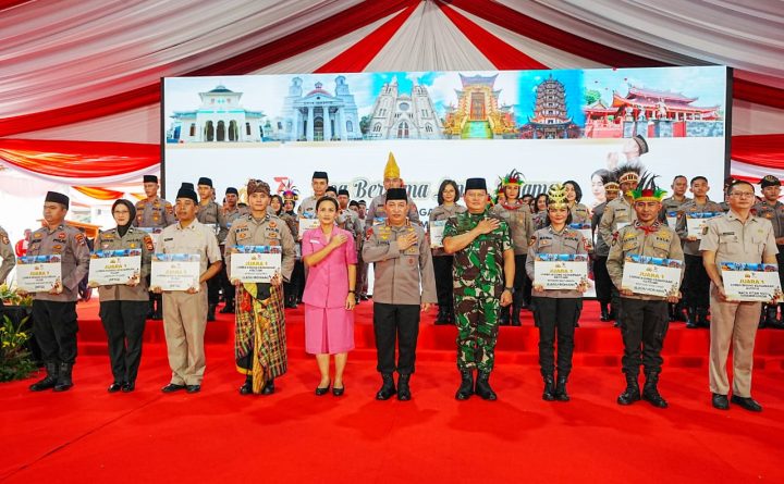 Jakarta – Kepolisian Negara Republik Indonesia (Polri) menggelar doa bersama dalam rangka Hari Bhayangkara ke-77 di Lapangan Bhayangkara Jakarta, Jumat (30/6/2023). Dalam kegiatan ini, Kapolri Jenderal Listyo Sigit Prabowo hadir bersama-sama dengan perwakilan dari TNI, OKP, ormas, elemen masyarakat dan seluruh perwakilan lintas agama. “Baru saja kami bersama-sama TNI Polri dan seluruh elemen masyarakat, okp,..