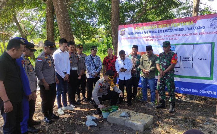 Bengkayang, Kalbar – Kepala Kepolisian Resor Bengkayang Polda Kalbar AKBP Dr. Bayu Suseno, S.H., S.I.K., M.M., M.H. meletakkan Batu Pertama Pembangunan Pos Pantau Sat Lantas Polres Bengkayang di Kecamatan Sungai Raya Kepulauan, Sabtu (17/6/23) pagi. Dalam kegiatan dihadiri oleh Pju Polres Bengkayang, Kapolsek Sungai Raya dan Kapolsek Sungai Raya Kepulauan, Camat Sungai Raya, Pjs. Danramil..